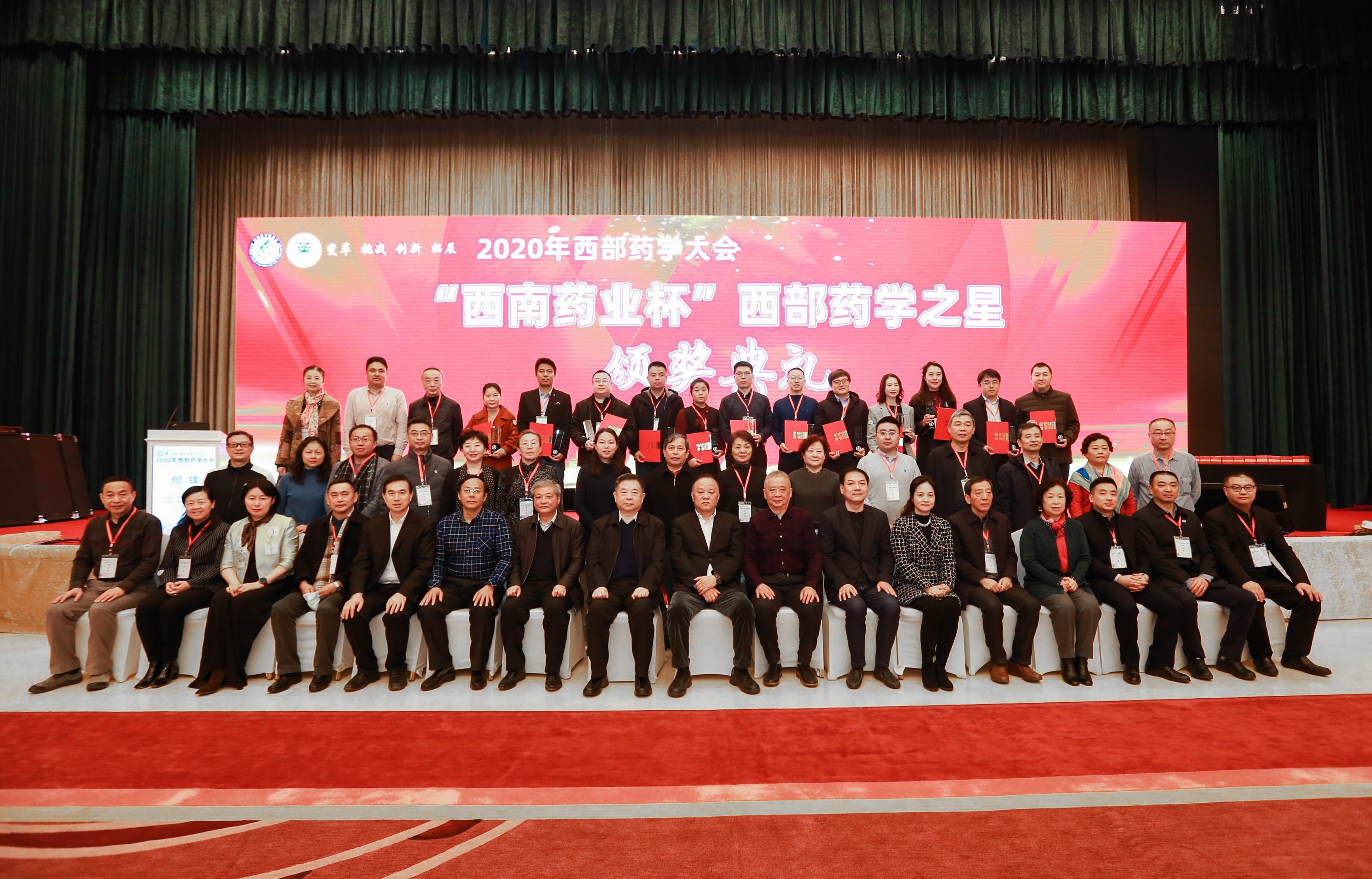 颁奖典礼上,来自贵州医科大学邓林教授等15位中青年药学专家荣获“西南药业杯”西部药学之星称号,西南药业党委书记、董事长鲜亚作为唯一的企业代表出席大会,与重庆市政协教科卫体委员会主任夏永鹏、重庆药学会理事长马琳、西部药学联合会主席丰雷、重庆市药品监督管理局副局长罗莉等领导一同为获奖专家颁奖并合影留念,将会议推上高潮。西部药学之星作为西部药学领域的先进代表,将共同为中国西部药学发展开辟一片新天地。