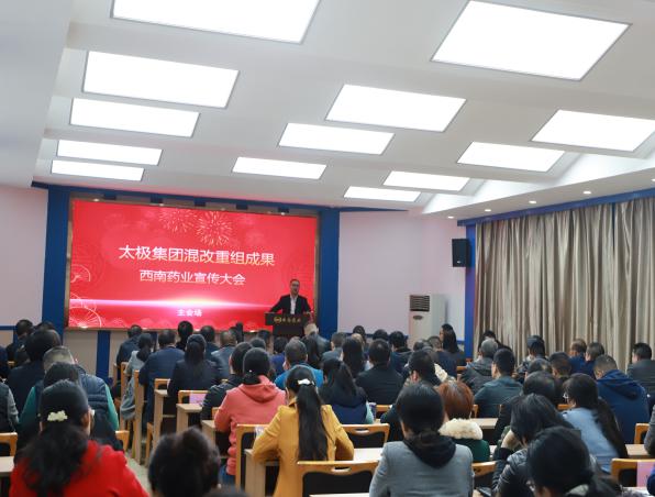 11月5日,西南药业召开太极集团混改重组成果宣传大会,公司领导班子成员、副科长及以上干部共180余人参会。公司党委书记、董事长鲜亚主持会议并讲话。