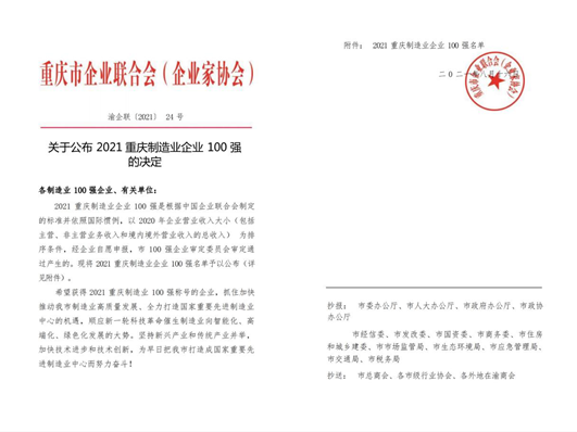 在严峻而激烈的市场竞争下,西南药业坚持发展不动摇,年销售持续稳步增长。经过重庆市企业联合会、企业家协会等部门层层评选,从众多企业中脱颖而出,荣登“2021重庆制造业企业100强”榜单。