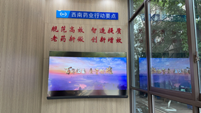 如今销售大楼旧貌换新颜,大楼外“西南药业销售公司”的文化石熠熠生辉,陈旧的外墙穿上了红、黄、灰相间的新衣。楼顶换成了压型瓦,保温效果好,隔热效果强,噪音也降低了;顺着大理石台阶拾级而上,鲜花、绿植簇拥两旁,电动玻璃门自动开启,多媒体播放着西南药业宣传片,一幅幅生动的画面吸引着访客驻足观看;多媒体上方,书写着西南药业行动要点:规范高效、智造提质、老药新做、创新增效。