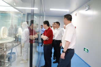 重庆市人民检察院第一分院党组成员、副检察长李荣成,沙坪坝区人民检察院党组书记、检察长程权一行参观粉针剂车间生产现场