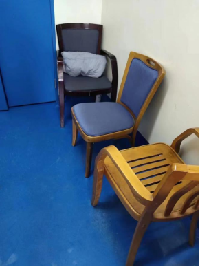 粉针剂车间、小容量注射车间、大容量注射剂车间及动力车间共11位同志被封控在厂里,晚上睡觉只能将就拼凑起几把椅子。一时间,解决吃住问题,成了头等大事。