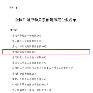 喜报|西南药业被命名为全国和谐劳动关系创建示范企业
