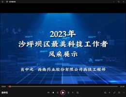 近日,沙坪坝区选树14名“最美科技工作者”和10名第二届“十佳科技青年”,西南药业生物工程研究所高级工程师肖中元与药物研究所制剂一室主任罗娟分别荣获2023年沙坪坝区“最美科技工作者”与第二届“沙坪坝区十佳科技青年”。他们深耕科研工作、潜心技术攻关,以创新驱动发展,在新时代、新征程中为新重庆、新沙区建设贡献西南力量。