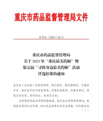 根据《重庆市药品监督管理局关于2023年“重庆最美药师”暨第五届“寻找身边最美药师”活动评选结果的通知》(渝药监[2024]24号),我司肖七琪同志被评选为2023年“重庆最美药师”。